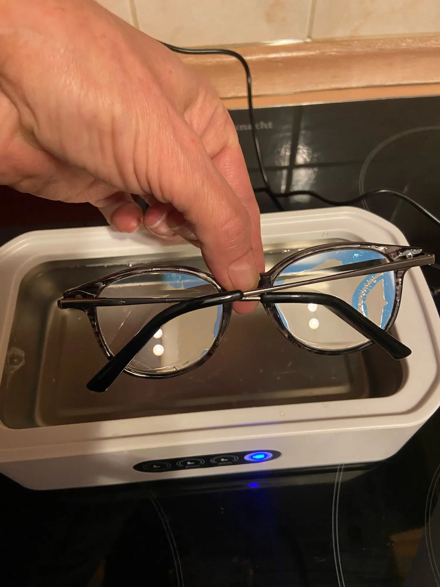 La cosa che mi ha sorpresa di più è la semplicità: metti l’oggetto dentro, premi un pulsante e fa tutto da solo. In pochi minuti gli occhiali sembrano appena usciti dal negozio.